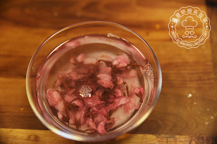 1、将盐渍樱花提前用温水泡开备用;
